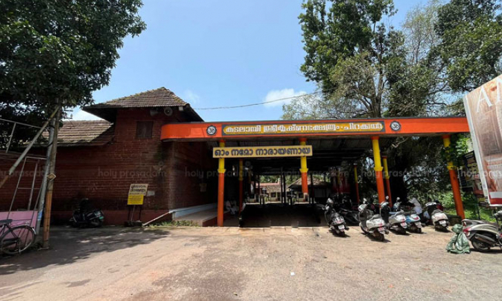 Kadalayi Sree Krishna Temple, located in Chirakkal, Kannur, is dedicated to Lord Vishnu and holds deep historical and mythological significance. According to legend, the temple's idol was consecrated by Sathyabhama, Lord Krishna's consort, around 5,000 years ago. The temple's annual festival begins on the 15th of the Malayalam month of Makaram (January) with the ceremonial flag hoisting (Kodiyettam) and concludes on the 22nd of Makaram with the holy bath (Arattu). Other significant celebrations include Ashtami Rohini, Guruvayoor Ekadashi, and the Mandala Pooja. The temple is steeped in legends, including one from the Mahabharata, where Sathyabhama, while worshipping an idol of Lord Vishnu, failed to notice Lord Krishna standing