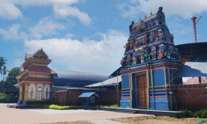 more along with fifteen sub-deities including the Navagrahas, Sapthamaathas (Seven Mothers), Moolaganapathy, Virabhadra, Hanuman, Pancha Mukha Hanuman, Radha Krishna, Kala Bhairava, Gomathavu, Bhadrakali, Shanmughan, Mahakali, Vaishnavi Devi, Chandran, and Aadithyan. An Ashtamangala Prashnam was conducted for the first time in 2016 and it was found that the current land where Chowara Adhiparashakthi temple resides had the divine presence of the Devi and other deities and was worshipped by ancient sages. To ensure that the devotees receive blessings from the goddess and other deities, the priests instructed the Dynamic Divine Trust to follow the guidelines of the Prashna Chart, resulting in the construction of the massive temple complex. The temple is an amalgamation of North and South Indian architectural styles, adorned with unique marble idols, intricate woodwork, stone carvings, etc. It’s noteworthy that such a temple, which provides equal importance to the three main deities, is quite uncommon. Additionally, idols like Veerbhadra, Kaalabhairava, Pancha Mukha Hanuman, Saptamatrikas, Vaishnavi Devi, and Radha Krishna add to its uniqueness. Many of the sculptures and artworks in the temple are also rare and intricately detailed. The temple adheres to the Kerala Tantra Vidhi during its festival, and the daily rituals at the temple are executed with meticulous precision, creating a sacred ambience that encourages both devotion and joy. Throughout the construction, many incidents and experiences conclusively proved the divine presence and convinced that this temple complex is heading to be an inspiring and everlasting Institution of worship benefiting large number of devotees with the blessings and divine grace that will be radiating from the temple.