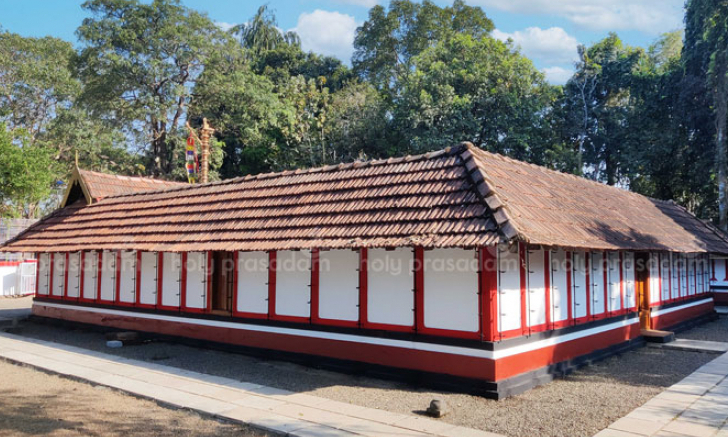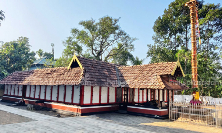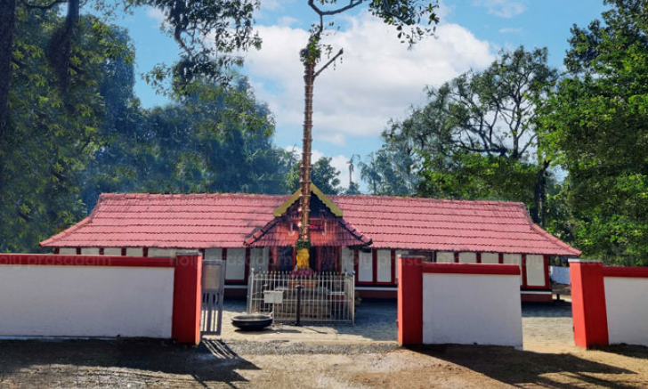 more existed at the site. However, an esteemed astrologer from the family foresaw the extinction of his lineage within four generations. To counter this, he urged his descendants to consecrate Mahavishnu alongside the Devi. Today, the temple also houses deities such as Ganapathy, Shasthav, Nagas, and a Sarppakavu (serpent grove). The surrounding groves and ponds create a peaceful and sacred atmosphere. Approximately 28 years ago, a building on the temple grounds collapsed, destroying many ancient documents and weapons, further proving the temple’s historical significance. According to legend, Lord Ayyappa once visited this temple, and warriors from this region fought alongside him against the Marava forces. The renowned Alangattu group that journeys to Sabarimala originates from this very area.