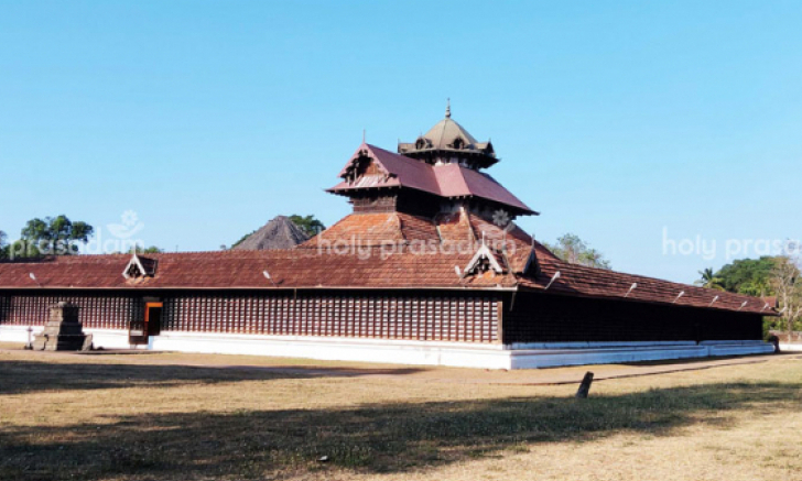 This famous temple is at Peruvanam in the Thrissur district. The place where Sage Puru performed penance is believed to have become famous as Peruvanam. It was one of the 64 main villages of ancient Kerala. The twin Siva lingams, consecrated in the round sanctum that has been covered with copper plates, (Irattayappan) are believed to be self-originated at the place where the Lord appeared before the sage. The sage kept the divine idols that he had with him on the branch of the Bilva tree when he went for a bath. As he found it impossible to take them from there upon coming more back, he built a sanctum at that height and consecrated the idols there. The sage is also consecrated at the western side of the temple. The temple is on a low hill of six and a half acres with many banyans, and Ilanji trees as well as one that has not been identified. Now there are two Sancta with Irattayappan and Matathilappan. Irattayappan is worshipped as Ardhanareeswara. There are Dakshinamurthy, Ganapathy, Rakheswari, and Manikandan also consecrated here. There is a huge Namaskara Mandapam which is beautified with sculptures. The temple is under the Cochin Devaswam Board and also under the protection of the Archaeological Survey of India. There is no festival here. But the deities of the other temples come and pay respects to the twin idol here. It is the idol of Dakshinamurthy that is taken out on ceremonial occasions.