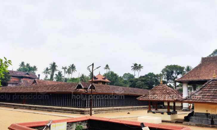 more by paddy fields Vasuki the godly serpent and holy nagas (serpents) stood guard and worshipped the divine one and the priceless treasures beneath the idol. This self-incarnated Linga in the present Sanctum Sanctorum' of the temple is only some four inches above the ground level and is in the form of a half circle, 12" in diameter. There is water all around, believed to be the Ganga. One Malayali Brahmin (Namboothiri) was fortunate to take away the Vasuki the Holy Naga King, on a palmyra leaf umbrella to his home (Mana or Illom) by the grace of Vanchulesa and it is believed that the Namboothiri family, now famous in Kerala as Pambummekkatt Illom, prospered afterwards by worshipping the Nagas. This Illom is some six miles east of this shrine. Over the head of the idol, more towards the left side, there is a scar mark. The legend has it that when the Lord with his consort Maheswari appeared before Arjuna in the forms of Kiratha and Kirathi (hunter and huntress) Arjuna mistakenly beat at the forehead of the Lord making this mark. On the left side of the front of the Mukhamandapam (entrance), a stone carving depicting Siva and Parvathy could be seen. It is also said that Uma and Maheswara appeared here as Ardhanareeswara, the left side of the idol representing, Naari (Uma) and the right, Naran (Maheswaran). The main and most coveted ritual to Vanchulesa is Dhara, the non-stop pouring of water, and Abhishekam with the chanting of Rudra Manthram. Ekadasa Rudram, Sankha abhisheka, Mrithyunjaya havanom etc. are believed to be very efficacious. Uma Maheswara Pooja or Dampathi Pooja is a speciality here. The main festival is in the month of Kumbham. It lasts for eight days commencing on the Ashtami day of Krishna Paksha as Kodiyettam (Flag hoisting) and Arattu on the Amavasi day after Sivarathri. Arattu is conducted at the sea, 4 miles west of the temple.