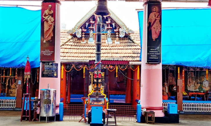 more the presence of His Holiness Srimad Sudeendra Theertha Swamiji in 1132 (1957) when he observed his first Chathurmasa Vritham and in 1164(1989) for Hrisotsavam. The festival is in the month of Falguna starting on Karthika day for 8 days and ending on Makam day with Aaratu. The Sub-deities are Hanuman whose temple is situated in south easten side, Mahaganapathy whose temple is in south west inside Nalambalam, Snake Gods whose temple is located south east of Hanuman Kovil. Sri A.Janardhana Rao of Perumpalli Padinjare Madom donated a Panchaloha idol of Mahalakshmi to be used during festivals and special days. From 1113 onwards according to the Temple Administration of Cochin Devaswom Acts, a five members committee is managing the affairs of this temple each for a 3-year period.