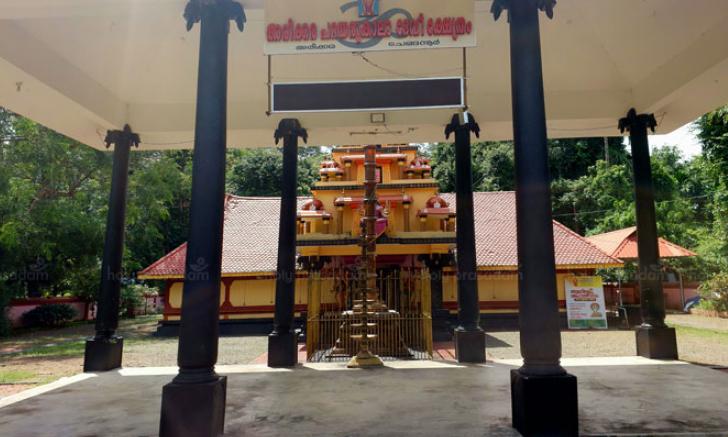 This is one of the popular temples in central Travancore. The place where the temple stands today was thick forest in the ancient days. A man who came to cut firewood from the forest, saw a most beautiful divine looking lady there. The lady asked him not to speak about what he had seen (parayaruth in Malayalam). But the terrified man reported the matter to the eldest male member of the Pathisseril family. Immediately the man lost his eyesight. The head of the family to whom the matter was reported, was very pious and a devotee of Goddess Kali. He went to the spot pointed out