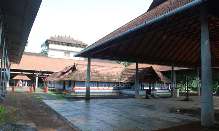 Panachickadu Saraswathi temple known as Dakshina Mookambika in South India in Panachickadu village is about 11 km south east of Kottayam railay station. Lord Mahavishnu is the main deity of the temple and considered as the guardian god of this locality and therefore the devotees first worship Mahavishnu and then Devi Saraswathi, Ganapathy, Siva, Sasthavu and Yakshy in an order of priority and importance. Just lower on the Southern side of Sree Vishnu temple, there is a granite cut small saras with ever flowing water all around the year. Moolavigraham, Prathista of Devi Saraswathi is underneath in the ‘Saras’ where